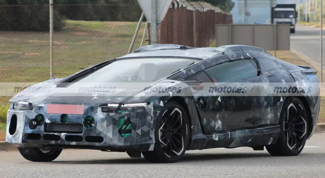 Попри щільний камуфляж, вже можна розгледіти ключові риси дизайну. Електрокар має плоске лобове скло з великим кутом нахилу, гострий передній край кузова та вузькі світлодіодні фари. Низька лінія даху формує клиноподібний силует, що вказує на акцент на аеродинаміку.