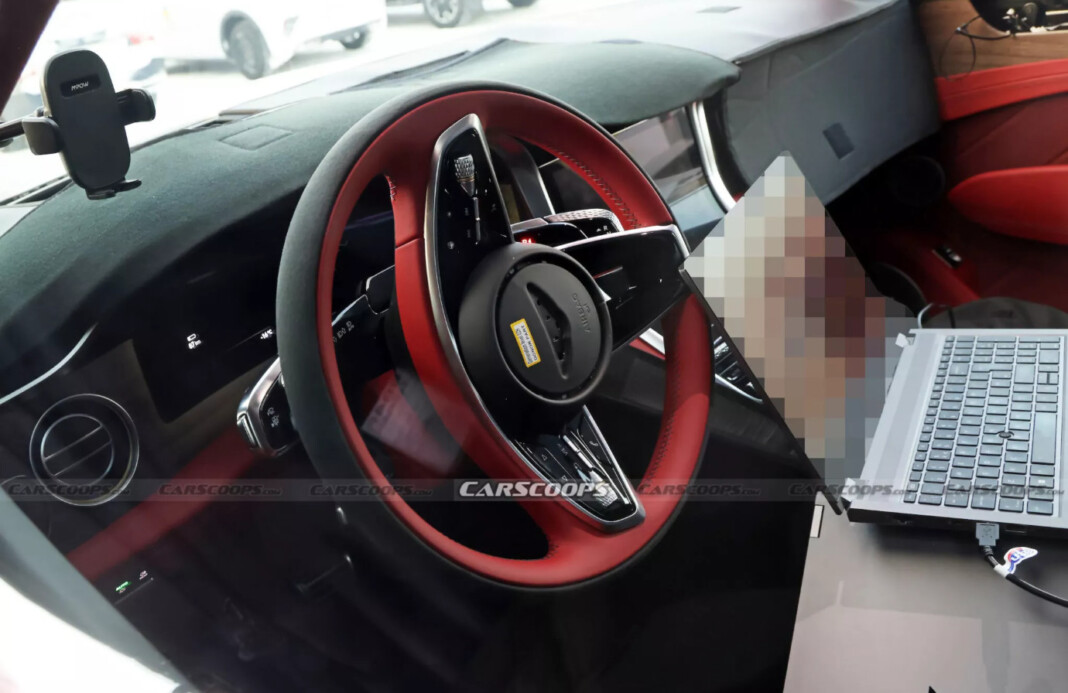 Усередині з’явилася одна з найбільш обговорюваних деталей. Прототип отримав вигнутий OLED-дисплей, дуже схожий на Flow Display у Porsche Cayenne. Це логічно, адже модель побудована на спільній платформі VW PPE (Premium Electric Platform).
