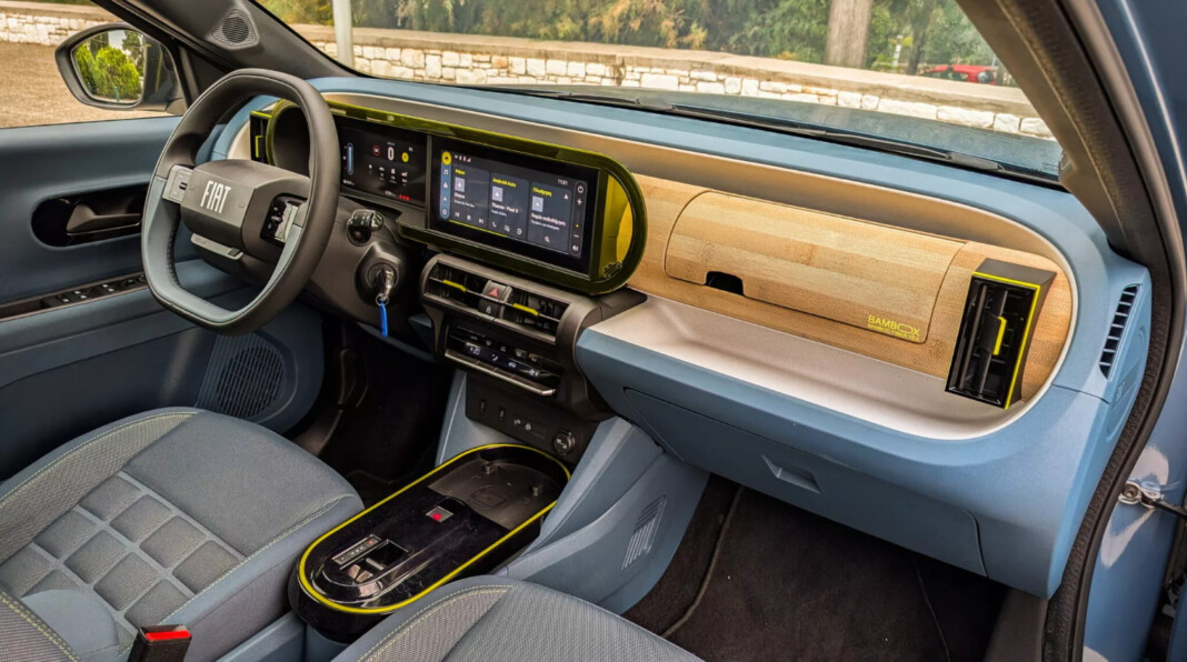 Зовні Grande Panda робить ставку на ретро-нотки: квадратні форми, піднятий кліренс, масивний пластиковий обвіс і фірмові “піксельні” LED-елементи. Fiat також додав невеликі «пасхалки» — написи Panda на кузові та дизайн, натхненний історичним заводом Lingotto.