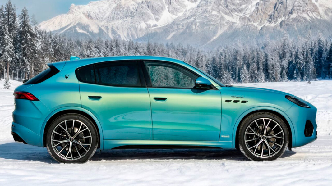 Зовні Grecale Cristallo вирізняється 21-дюймовими дисками, глянцево-чорною решіткою радіатора та тонкими акцентами в колір кузова. Усередині — контрастний білий салон із двома цифровими дисплеями, електричними сидіннями з підігрівом і пам’яттю, а також декоративними вставками, що повторюють колір кузова. Додали й дрібні ексклюзивні деталі: особливе підсвічування стелі, фірмові килимки, чорні шильдики та навіть клапани коліс.