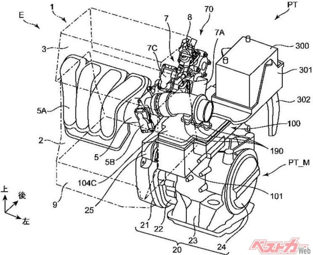 Судячи з креслень, нова Mazda CX-5 буде “паралельним” гібридом, що означає, що як двигун внутрішнього згоряння, так і електричний мотор відповідатимуть за обертання коліс. Вони можуть працювати як разом, так і незалежно один від одного. Інший електромотор у цій схемі використовується як генератор для підзарядки під час руху.