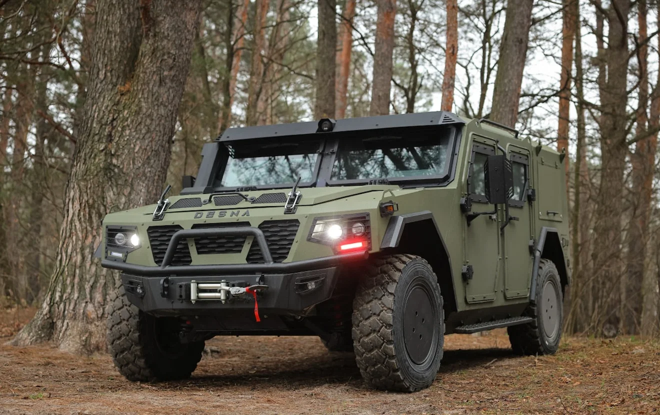 В Україні представили новий легкий військовий бронеавтомобіль DESNA, який розглядають як потенційну альтернативу американському HMMWV. Машина створена для заповнення ніші між дорогими MRAP і цивільними пікапами, що нині широко застосовуються у війську, але не забезпечують достатнього рівня захисту. Про це пише Auto24.