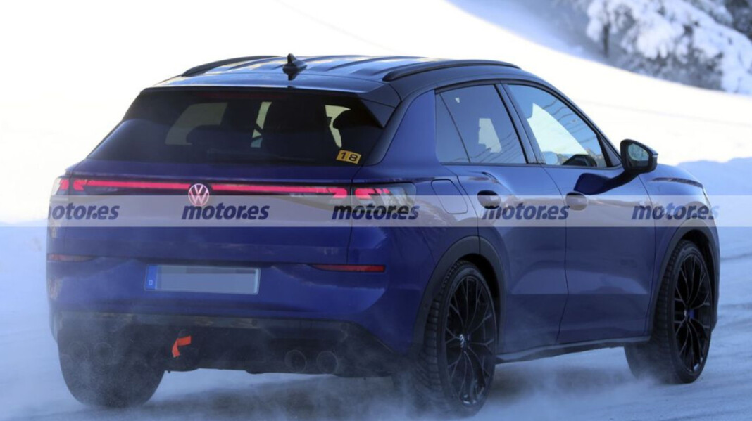 Прототип пофарбований у фірмовий «синій олівець» із чорними 20-дюймовими дисками та гальмами з яскравими супортами. Спереду — агресивний бампер із великими повітрозабірниками, ззаду — одразу чотири патрубки вихлопу та глянцевий дифузор. Усе це чітко натякає: перед нами найпотужніша версія T-Roc.