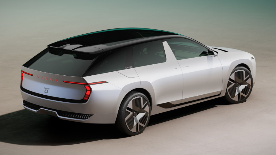 У тому ж загострено-кутастому стилі виконано й задню частину з Т-подібними ліхтарями. Квадратні виштамповки над колісними арками додають мускулистості, тим більше що крила універсала й без того широкі. У результаті вперше за довгий час у масового електромобіля вийшли правильні та візуально легкі пропорції. Габарити Skoda Vision O: довжина 4850 мм, ширина 1900 мм, висота 1500 мм.