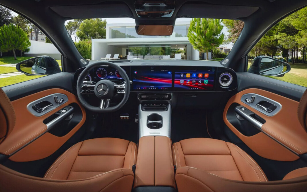 Зовні GLB отримав широку решітку, «зоряні» DRL та повну LED-полосу, а задня частина привертає увагу вертикальними ліхтарями та тонким світловим мостом. У салоні можна замовити Mercedes Superscreen з трьома дисплеями (10,25″+14″+14″). Мультимедіа MBUX 4-го покоління працює на Unity Engine та має AI-асистента на базі Microsoft, Google і ChatGPT.