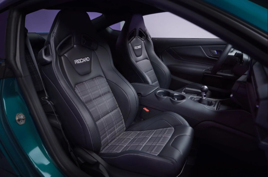 Салон Mustang FX отримав незвичайні крісла з частковим оздобленням шкірою та вставками з тканини в клітинку, яку Ford використовував сорок років тому. Цікаво, що такий рисунок сидінь доступний не лише для стандартних крісел, але й для спортивних ковшів Recaro, які продаються окремо як опція.