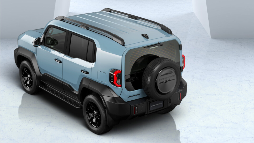 Land Cruiser FJ отримав чорні дверні ручки, дзеркала такого ж кольору, рейлінги та антену «акулячий плавник». Задню частину прикрашають вертикальні ліхтарі, розташовані обабіч багажних дверей, що відчиняються убік (на них передбачене кріплення для запаски). У нижній частині бампера — вузькі вертикальні відбивачі та лампи заднього ходу.