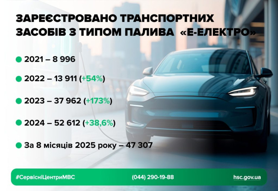 Ринок електромобілів в Україні у 2025 році стрімко зростає: статистика реєстрацій від МВС вражає