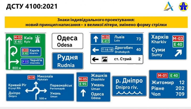 Згідно з інформацією Укравтодору, стандарт спільно розробили фахівці ДП «ДерждорНДІ» і «Агенти змін» з урахуванням зарубіжного досвіду. ДСТУ 4100: 2021 передбачає нові принципи і правила компонування дорожніх знаків: