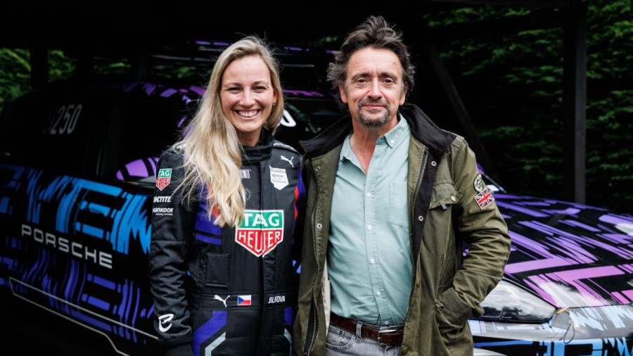 Окрім цього, електричний Cayenne продемонстрував і свої можливості буксирування — він тягнув причіп із вінтажним автомобілем з особистої колекції Хаммонда. Porsche заявляє, що серійний Cayenne Electric зможе буксирувати причепи масою до 3,5 тонни.