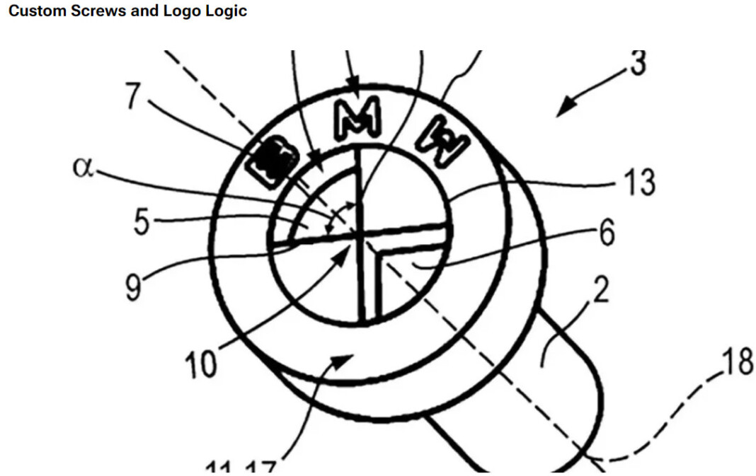 Йдеться про спеціальні гвинти з головками у формі фірмового логотипа BMW. У патентній документації, поданій до німецького відомства, показані кріплення, поділені на чотири сектори — вони повторюють відомий «пропелер» бренду. Запропоновано кілька варіантів конструкції: у частини з них два сегменти заглиблені, а два — плоскі або опуклі.
