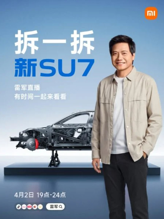 Xiaomi обрала незвичний спосіб представити оновлений електроседан SU7. Уже сьогодні, 2 квітня, генеральний директор компанії Лей Цзюнь проведе прямий ефір із повним розбиранням автомобіля, під час якого машину розберуть буквально по деталях, повідомляє gizmochina.com.